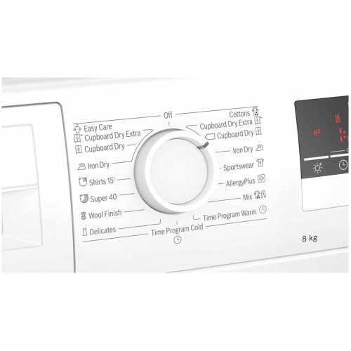 Общие параметры Тип сушильная машина Модель Bosch WTN85423ME Основной цвет белый Дополнительный цвет нет Основные характеристики Тип сушки конденсационная Тепловой насос нет Максимальная загрузка 8 кг Материал барабана нержавеющая сталь Дисплей есть Вид управления сенсор, поворотный механизм Язык панели управления русский Инверторный двигатель нет Реверсивное вращения барабана нет Наличие фильтра от мелких частиц есть Возможность подключения к сливу есть Самоочищающийся конденсатор нет Питание Класс энергопотребления B Потребление электроэнергии за цикл 4.63 кВт Напряжение питания 220-240 В/50 Гц Потребляемая мощность 2600 Вт Потребляемая мощность в спящем режиме 0.5 Вт Мощность в выключенном режиме нет Длина сетевого кабеля 1.45 м Функции и программы Отсрочка старта есть Продолжительность отсрочки 24 ч Определение влажности белья есть Определение наличия белья в барабане нет Функция обработки паром нет Антисминание после сушки есть Сушка при пониженной температуре есть Управление со смартфона нет Приложение для управления нет Голосовой помощник нет Количество программ 15 Программы смешанные ткани, спортивная, шерсть, тонкое белье, по времени: холод, по времени: тепло, супер 40', в шкаф (хлопок), под утюг (хлопок), в шкаф (синтетика), под утюг (синтетика), в шкаф+ (хлопок), чувствительная, супер 15', в шкаф+ (синтетика) Прочие режимы и функции сушка по времени, антисминание, уровень сушки, сушка при пониженной температуре, отсрочка старта, блокировка панели управления Безопасность Индикация неисправностей есть Индикация полного резервуара есть Индикация заполнения фильтра есть Блокировка от детей есть Дополнительная информация Совместимая стиральная машина для сбора в колонну Bosch WGA242X4OE, Bosch WAT28461OE, Bosch WAT20441OE, Bosch WGA142X6OE, Bosch WGA242XVOE, Bosch WAV28IH1OE, Bosch WAX32FH1OE, Bosch WAV28GH1OE, Bosch WAT286H2OE, Bosch WAX32EH1OE, Bosch WAX32DH1OE, Bosch WAW326H1OE, Bosch WAV28HH1OE, Bosch WAY32742OE, Bosch WAW28540OE, Bosch WAW28740OE Соединительный элемент Bosch WTZ11400, Bosch WTZ27410, Bosch WTZ27400 Подсветка барабана нет Уровень шума 65 дБ Сторона открывания двери направо Перенавешиваемые двери нет Комплектация документация Дополнительно индикация времени до конца программы, возможность отключения звукового сигнала Габариты и вес Ширина 59.8 см Высота 84.2 см Глубина 61.3 см Глубина с учетом выступающих элементов 66.5 см Глубина с открытой дверцей 110.5 см Вес 41.2 кг Ширина в упаковке 62 см Высота в упаковке 88 см Глубина в упаковке 68 см