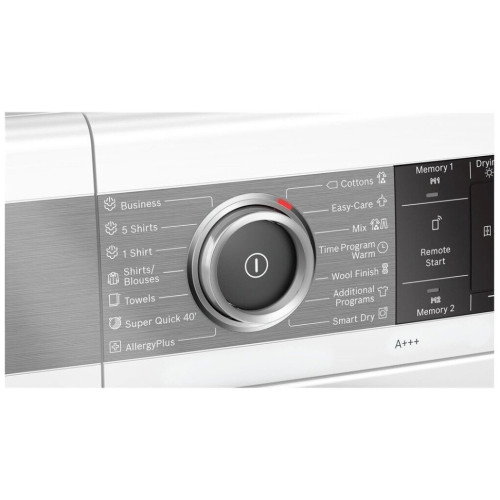 Тип сушки: конденсационная (тепловой насос); Загрузка (кг): 9; Кол-во программ сушки: 14; Своя программа; Ф-ция антисминания; Контроль влажности белья; Таймер отсрочки старта; Быстрая сушка; Освежающий цикл; Класс энергопотребления: А+++; Уровень шума (дБ): 62; Защита от детей; Управление через Интернет Дополнительная информация и технические характеристики Загрузка: 9 кг Тип осушителя: конденсаторная Класс энергоэффективности: A +++ в диапазоне от «A +++» до «D». Энергопотребление 193 кВтч / год при 160 стандартных циклах сушки в программе Хлопок 60 ° C при полной и частичной загрузке, включая функцию ожидания. Фактическое потребление зависит от того, как используется устройство. Энергопотребление в программе Хлопок 60 ° C при полной нагрузке 1,61 кВтч и половинной загрузке 0,9 кВтч Потребляемая мощность в режиме ожидания: 0,1 Вт. Продолжительность ожидания: 30 минут В тестах использовалась программа для хлопка для гардероба, которая является стандартной программой, к которой относится информация, содержащаяся на энергетической этикетке. Эта программа лучше всего подходит для сушки белья из хлопка с нормальной влажностью и является наиболее эффективной программой для сушки хлопка. Средняя продолжительность программы хлопка при полной и половинной загрузке: 168 мин. Продолжительность стандартной программы стирки хлопка при полной загрузке: 215 мин. и с половинной загрузкой: 132 мин. Класс эффективности конденсации: B по шкале от G (самый низкий) до A (самый высокий). Средний уровень конденсации в стандартных программах хлопка составляет 88% при полной загрузке и 88% при половинной загрузке. Средневзвешенный уровень конденсации - 88%. Уровень шума: 62 дБ (А) при 1 пВт Стандартные программы: Хлопок, Синтетика IronAssist (удаление складок паром) SmartDry Специальные программы для сушки: Другие программы, Super 40, Полотенца, SmartDry, Тонкое белье, Спорт / Фитнес, Теплая программа по времени, Холодное проветривание, Шерсть, Синтетика, Одеяла, Смешивание, Утюг для бизнеса, Рубашки Iron Assist 5, Рубашки Iron Assist 1, Перья / Пух, Рубашки / Блузки, Антиаллергенные, Хлопок Home Connect: удаленное управление и мониторинг устройств, управление энергопотреблением, удаленная диагностика 120 мин. Фаза против сминания в конце программы. Кнопки TouchControl: Опции, Памятка 1, Дистанционный запуск, Защита от сминания, Пуск / Пауза / Добавление белья, Базовые настройки, Готово, Память 2, Память 1, Цель сушки, 24 часа Готовность AutoClean - постоянная эффективность процесса сушки благодаря автоматической очистке теплообменника и отсутствие необходимости чистить фильтр на дверце после каждой сушки Технология AutoDry распознает, когда белье достаточно сухое, благодаря чему текстильные изделия защищены от чрезмерного высыхания. Чувствительная система сушки: большой барабан из нержавеющей стали, барабан со специальной внутренней структурой для защиты тканей, нежный скребковый профиль Внутреннее освещение барабана: LED Четкий текстовый TFT-дисплей с меню на польском языке Ручка выбора программ со встроенным переключателем Антивибрационный дизайн: уникальная конструкция боковой пластины для снижения шума вращения и вибрации DrainSet - сушилка, укомплектованная комплектом, позволяющим подключить устройство к канализации, поэтому вам не придется опорожнять ящик, собирая влагу от высушенного белья. Блокировка от детей: да Звуковой сигн