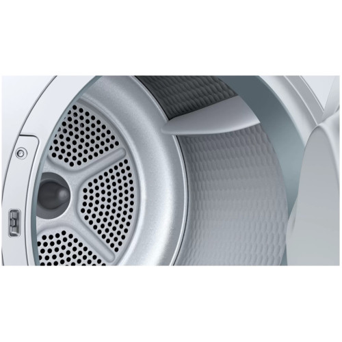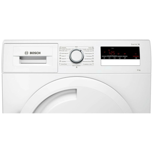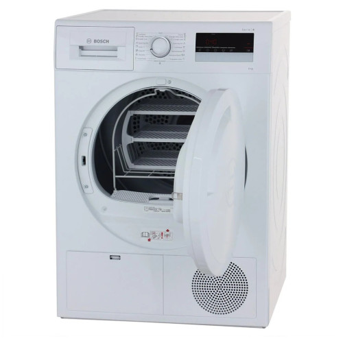 Сушильная машина Bosch Serie | 4 WTM83201OE обрабатывает белье теплым воздухом со всех сторон, смягчая и разглаживая ткань. Конструкция барабана снижает уровень вибрации и шума, поэтому эксплуатация в комфортных условиях возможна даже ночью. Устройство имеет резервуар для сбора конденсата и систему дренажа. Максимальная вместимость барабана составляет 8 кг. Дверца открывается на 180°, что обеспечивает удобство при загрузке и извлечении белья. Модель контролирует температуру обработки ткани и степень влажности, поэтому риск пересушивания и образования складок исключен. В функционале устройства есть возможность отсрочки старта до 24 ч.По завершении работы модель издает звуковой сигнал, который при необходимости можно отключить. Для сушки шерстяных вещей в барабан устанавливается специальная корзина, предотвращающая образование катышек. Встроенная подсветка способствует максимально комфортным условиям при применении. Устройство Bosch Serie | 4 WTM83201OE оснащено дисплеем, на котором отображается индикация хода программы, время до окончания цикла и заполнения емкости для конденсата. В конструкции есть ворсовый фильтр. Сушильная машина имеет такие программы, как «Подушки», «Пуховые изделия», «Спортивная одежда», «Тонкое белье» и другие.