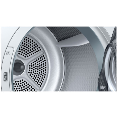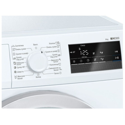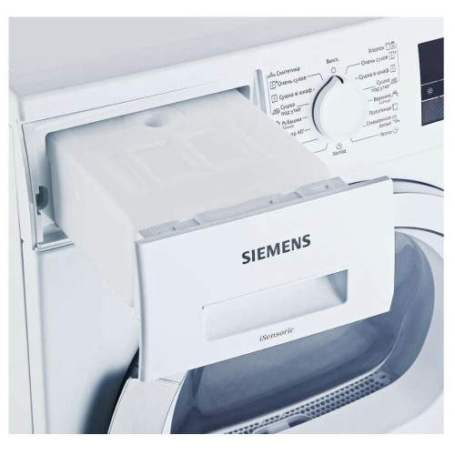 Сушильная машина с тепловым насосом Siemens WT45H200OE имеет по 3 программы для сушки хлопковых вещей и синтетики. Вместительный барабан позволяет единовременно загружать до 9 кг белья, а режим для пуховиков позволит высушить даже очень объёмную верхнюю одежду. Программа autoDry с сенсорным управлением предотвращает появление складок на белье в процессе сушки. Сушильный автомат работает по принципу теплового насоса, благодаря чему воздух в помещении, в котором установлен автомат, не нагревается.