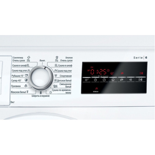 Сушильная машина BOSCH WTG86400OE послужит прекрасным дополнением к стиральной машине. Сразу после стирки в барабан машины укладывается до 9 кг мокрого белья и спустя короткое время оно полностью высушено. Программа «сушка под утюг» подготовит белье к глажке, оставив его в степени влажности как после сбрызгивания водой, а после программы «сушка в шкаф» от влаги не останется ни следа. Плавное вращение и конструктивные особенности барабана предотвращают появление новых складок. BOSCH WTG86400OE оснащена большой прозрачной дверцей, обрамленной хромированным ободом. Через нее удобно контролировать процесс сушки используя встроенную LED-подсветку. Различные программы помогут правильно высушить одежду из любых материалов, а по окончании сушки машина подаст звуковой сигнал. Функция «Блокировка от детей» не даст маленьким шалунам вносить свои поправки в процесс, а при открытии дверцы машина просто остановится.
