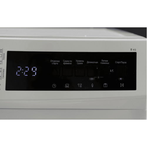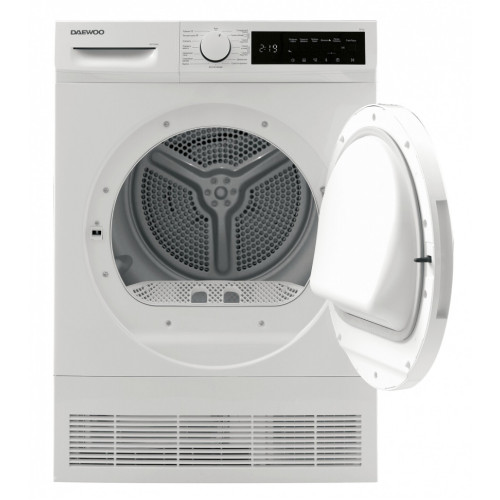 Сушильная машина Daewoo оптимальна для установки в колонну. Для управления моделью используются поворотный переключатель и сенсорные кнопки. Информация о текущей работе устройства выводится на цифровой дисплей. В арсенале модели есть 15 автоматических программ. За счет этого пользователь может выбирать оптимальный вариант в зависимости от потребностей. В конструкции сушильной машины есть специальная емкость для сбора образующегося конденсата. Это позволяет эксплуатировать устройство в помещении, в котором отсутствует возможность подключения стационарного слива. При заполнении контейнера на экране дисплея появится соответствующий символьный знак. Диаметр люка составляет 33 см. Благодаря этому повышается комфорт загрузки и извлечения габаритных вещей. При необходимости дверцу можно перенавесить, изменив сторону раскрытия в зависимости от потребностей. В арсенале сушильной машины есть отсрочка запуска до 23 ч. Благодаря этому пользователь может самостоятельно устанавливать время начала цикла. Звуковой сигнал, который оповещает пользователя об окончании сушки, можно отключить. Это повышает комфорт использования модели в ночные часы.