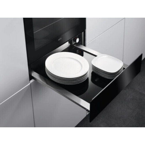Шкаф предназначен для нагрева посуды перед подачей блюд, а также для сохранения температуры и вкусовых свойств пищи. Встраиваемый ящик черного цвета изготовлен в Италии из высококачественных и экологически чистых материалов. Монтажные размеры прибора (ВхШхГ): 14.1х56х55 см, масса — 17 кг, мощность подключения — 800 Вт. Выдвижная дверца отличается комфортом в эксплуатации благодаря технологии Push-Pull. Корпус модели имеет специальное защитное покрытие против отпечатков пальцев и других загрязнений. Устройство может одновременно нагревать до 6 комплектов посуды (в зависимости от размеров). Шкаф имеет широкие функциональные возможности: подогрев посуды, разморозка продуктов, приготовление теста и поддержание температуры готовых блюд. Диапазон рабочих температур: 30-80°C, предусмотрена эффективная система циркуляции воздуха в рабочей камере. Благодаря технологии холодный фасад исключена возможность получить ожог во время работы подогревателя. Практичная и многофункциональная модель станет отличным дополнением интерьера современной кухни.