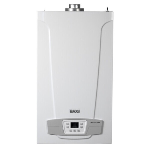 Двухконтурный настенный газовый котел Baxi Eco Life предназначен для организации систем отопления и ГВС как в многоэтажных домах, так и в небольших коттеджах. Особенности: * Котлы Baxi Eco Life адаптированы к российским условиям. Устойчиво работают при понижении входного давления природного газа до 4 мбар в диапазоне питающего напряжения 170 – 270 В; * Плавное электронное зажигание; * Рассекатели пламени на горелке изготовлены из нержавеющей стали; * Латунная гидравлическая группа; * Турбинный датчик протока горячей воды (расходомер); * Энергосберегающий циркуляционный насос со встроенным автоматическим воздухоотводчиком; * Первичный медный теплообменник, покрытый специальным составом для дополнительной защиты от коррозии; * Вторичный пластинчатый теплообменник из нержавеющей стали; * Трехходовой клапан с электрическим сервоприводом; * Манометр; * Автоматический байпас; * Постциркуляция насоса; * Фильтр на входе холодной воды; * Два диапазона регулирования температуры в системе отопления: 30-85°С и 30-45°С (режим «теплые полы»); * Встроенная погодозависимая автоматика (возможность подключения датчика уличной температуры); * Универсальный разъем OpenTherm; * Полная совместимость с системой удалённого управления BAXI Connect+; * Возможность подключения комнатного термостата и программируемого таймера; * Широкий спектр защитных систем.