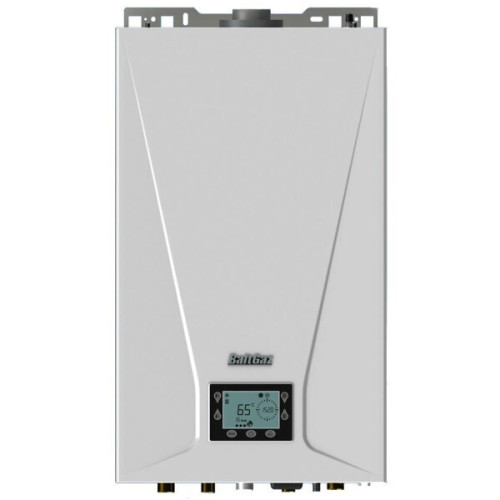 Газовый котел BaltGaz TURBO E 14 (30193) - отопительный газовый настенный двухконтурный, с принудительной циркуляцией теплоносителя (встроенный насос) и закрытой камерой сгорания «BaltGaz Turbo Е 14. Котёл предназначен для горячего водоснабжения (далее – ГВС) в санитарных целях. Газовый котел BaltGaz TURBO E 14 (30193) оснащен технологией One Piece Flow – «один котел - один мастер» и экологически чистым медным теплообменником. Часовая программа работы котла позволяет задать порядок включения/выключения отопления в зависимости от времени суток, а недельная программа работы котла позволяет задать порядок включения/выключения отопления в зависимости от текущего часа и дня недели. Также представленная модель отличается некоторыми режимами, например: Режим «ЕCO» предназначен для экономии расхода газа путем управления работой котла; Режим «Теплые полы» для оптимального регулирования температуры теплоносителя и исключения его перегрева в системе; режим «Лето» - котёл работает только на систему горячего водоснабжения (ГВС); и режим «Зима» - котел работает и на отопление, и на ГВС. Газовый котел BaltGaz TURBO E 14 (30193) - это удобство конструкции - легкосъемная передняя крышка на 2-х винтах, откидные боковые панели для проведения монтажа и обслуживания, а также современный 4-х дюймовый информативный дисплей; возможность подключения Wi-Fi модуля (дополнительная опция под заказ); возможность работы котла на природном (G20) или сжиженном газе (G30); разрешается использование в качестве теплоносителя воду или антифриз. Компактные размеры - 700х420х270 мм;