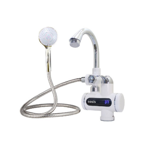 Электрические проточный водонагреватели «Oasis». Современный европейский дизайн вместе с удобной и надёжной электроникой дают практичное решение для любых ваших потребностей нагрева воды. * Моментальный нагрев воды * Все детали выполнены из прочных и безопасных материалов * Мощный нагревательный элемент * Возможность поворачивать кран на 360° * Большой дисплей, показывающий температуру нагрева * В комплект входит душевая лейка со шлангом * Кабель оснащён устройством защитного отключения