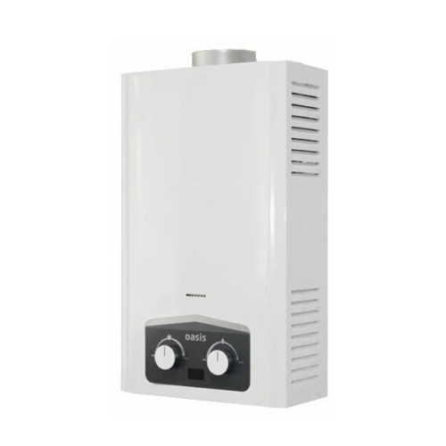 Газовый проточный водонагреватель Oasis Modern 24M предназначен для нагрева воды в квартире или в загородном доме. Принцип его работы достаточно прост: вода проходит через теплообменник прибора и моментально нагревается от сгорающего газа, поступая к потребителю уже горячей. Автоматический розжиг от батареек помогает избавиться от неудобств при неожиданном отключении электричества. Работа прибора осуществляется на природном газе. Водонагреватель является прочным и безопасным в использовании благодаря: автоматическому розжигу при открывании крана с водой; использованию батареек 3В; панели управления с дисплеем, на котором отображается температура нагрева и уровень заряда батареи; трубе для подключения к дымоходу; наличию систем безопасности; надежному теплообменнику со специальным покрытием.