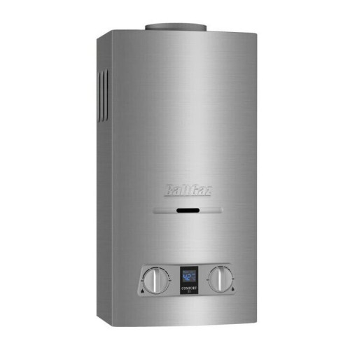 Газовая колонка BaltGaz Comfort 11  предназначена для обеспечения горячей водой квартир и загородных домов. Спроектирована специально для российских условий эксплуатации, поэтому надежно работает при пониженном давлении воды. Колонка нагревает 11 литров воды в минуту и имеет гидравлическую модуляцию, которая обеспечивает стабильный нагрев воды вне зависимости от расхода. Отличительная особенность BaltGaz Comfort 11 в наличии цифрового дисплея, отображающего уровень заряда батареи и температуру воды. Технические характеристики: экологически чистый медный теплообменник; гидравлическая модуляция – стабильный нагрев воды вне зависимости от расхода; обеспечение двух точек водоразбора; камера сгорания с водяным охлаждением; работа на природном или сжиженном газе; автоматический розжиг. Преимущества: цифровой дисплей, отображающий температуру воды и уровень заряда батареи; две ручки регулировки для расхода воды и газа; работа при минимальном давлении воды; комплектующие российского производства; компактные габариты; эргономичный дизайн; гарантия 5 лет. Безопасность: многоуровневая система защиты предотвращает перегрев воды при малом протоке; антиблокировочная защита; защита от влияния внешних факторов.