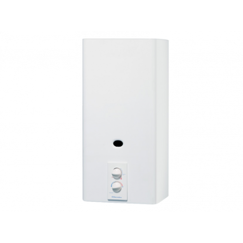 Electrolux GWH 350 RN Функциональные особенности Описание GWH 350 RN- газовая колонка с пьезоэлектрическим розжигом запальной горелки и автоматическим контролем температуры нагрева. Конструкция Водонагреватель серии GWH имеет многоуровневую систему безопасности. Первый уровень системы безопасности — датчик тяги. Датчик срабатывает при отсутствии или появлении обратной тяги, отключая подачу газа на основную горелку. Второй уровень системы безопасности — термопара, который автоматически прекращает подачу газа при погасании пламени запальной горелки. Третий уровень безопасности — гидравлический предохранительный клапан, который необходим для того, чтобы газ поступал на основную горелку только в том случае, если в теплообменнике циркулирует вода. Это предохраняет газовую колонку от перегрева. Модулирующая горелка, автоматически регулирует высоту пламени при перепадах давления в системе водоснабжения и увеличении расхода воды, тем самым обеспечивая заданную температуру нагрева. Газовые проточные водонагреватели Electrolux оснащены, медным теплообменником. Теплообменник изготовлен из электролитической меди, конструктив, которого предотвращает образование накипи, а специальное покрытие защищает теплообменник от высоких температур. Горелка в водонагревателях Electrolux, сделана, из высококачественной нержавеющей стали, что значительно увеличивает срок её эксплуатации. Газовый водонагреватель Electrolux серии GWH может работать в одном из двух режимов — более экономичном или более мощном. Настоящее европейское качество, основанное на современных технологиях, совершенный дизайн водонагревателя и высокий уровень безопасности даёт возможность надежной и стабильной работы. Отличительные особенности * пьезоэлектрический розжиг * модулирующая горелка * многоуровневая система безопасности * два режима мощности нагрева * повышение температуры на 25-50°С * терморегулятор на передней панели * удобство в эксплуатации * современный дизайн * длительный срок службы * диаметр дымохода 110 мм Монтаж При установке водонагревателя оставляют свободное пространство: 50 мм по обеим сторонам, 150 мм сверху, 150 мм снизу и 300 мм от передней панели. Прибор располагают на стене и подсоединяют к газопроводу и трубопроводам холодной и горячей воды. Газовую колонку можно подключить практически к любой системе вытяжки. Применение GWH 350 RN предназначен для быстрого и надежного решения проблем с горячей водой при работе на природном газе с давлением 13 мбар и давлением воды 1-10 атм. Гарантия качества Газовый водонагреватель имеет сертификаты соответствия требованиям нормативных документов ГОСТ. Бренд: Electrolux Модель: GWH 350 RN
