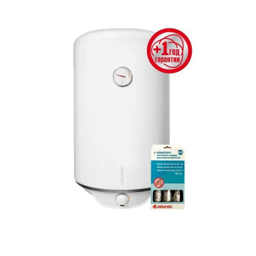 Steatite 50 N3 от известного высоким качеством выпускаемой продукции производителя –Atlantic представляет собой высокоэффективный и экономичный электрический водонагреватель, емкостью в 50 литров. Прибор выполнен в современном дизайне, имеет элегантный внешний вид и компактные размеры. Благодаря тому, что нагревательный элемент закреплен под углом, прибору обеспечено быстрое и качественное прогревание на 30 % больше, чем у обычных водонагревателей со стандартным вариантом расположения ТЭНа. Основные характеристики рассматриваемой модели водонагревателя: * Компактная форма корпуса. * Прочный бак из стали. * Наружный термометр. * Пенополиуретановая изоляция бака. * Керамический нагревательный элемент, погруженный специальную эмалированную колбу. * Прочная и надежная эмаль, содержащая двуокись титана и кобальта, которая имеет гигиенические и антибактериальные характеристики. * Магниевый анод для антикоррозийной защиты. * Отсутствие возможности смешивания горячей и холодной воды в баке. * + 30 % горячей воды за счет уменьшенного зеркала смешивания. * Предохранительный клапан (клапан сброса избыточного давления воды). * Автоматическое отключение при перегреве (или вручную). * Максимально низкий уровень звукового давления. * IP 24 - полное соответствие Европейским стандартам электрической безопасности. * Гарантия на электрическую часть 2 года; * Гарантия на бак 7 лет. Серия Slim Steatite от компании Atlantic – это модельный ряд водонагревателей, объемом от 30 до 80 литров. Все приборы семейства оснащены технологией сухого ТЭНа, что означает, что керамический нагревательный элемент размещен в специальной защитной колбе. Таким образом, ТЭН не подвержен износу долгие годы эксплуатации, кроме того увеличена эффективность работы при минимальных энергозатратах. Стоит также отметить, что все водонагреватели серии имеют компактные размеры, благодаря чему, могут быть помещены даже в ограниченное пространство помещения.