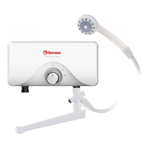 Проточный водонагреватель модели Thermex (Термекс) City 5500 был изготовлен специально для обустройства городских квартир. Оборудование отличается компактностью и монтируется прямо над раковиной. Прибор прост в эксплуатации: необходимую ступень мощности пользователь сможет переключить за считанные мгновения. Водонагреватель работает практически бесшумно. Особенности и преимущества: * Простой настенный монтаж над раковиной. * Три уровня мощности. * Медный нагревательный элемент. * Полный комплект аксессуаров: * Душевая насадка. * Шланг для душа. * Держатель душевой насадки. * Излив для раковины. * Переключатель «кран/душ». * Крепеж, фильтр, уплотнения. Проточные водонагреватели Thermex серии CITY были изготовлены специально для применения в городской местности. Приборы отличаются компактными размерами, поэтому быстро и удобно монтируются. Каждая модель из серии успешно может функционировать в трех ступенях мощности, которые регулируются пользователем вручную. Оборудование рассчитано на бесперебойную работу и технического обслуживания требует редко.