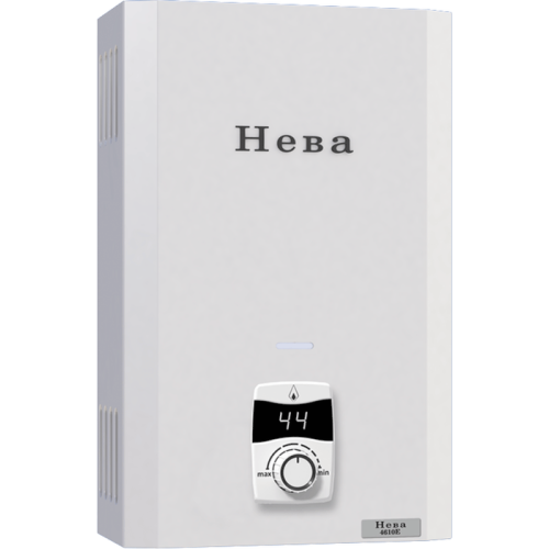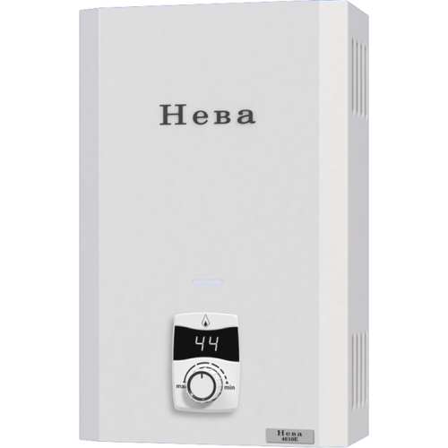 Газовый проточный водонагреватель NEVA (Нева) 4610Е - это компактная бытовая модель с высокой производительностью и удобным управлением с большим цифровым дисплеем. Важным преимуществом оборудования является высокий уровень безопасности, в которую входит защита от перегрева, от повышенного давления, газ-контроль и так далее. Особенности и преимущества: * Электронное зажигание от батареек * Устойчивая работа при низком давлении воды * Жидкокристаллический дисплей с выводом информации о текущей температуре воды * Современная автоматика безопасности: 6 систем безопасности * Датчик перегрева * Датчик обратной тяги, отключение водонагревателя при перекрытии дымохода * Ионизационный электрод для контроля наличия пламени * Электромагнитный клапан для перекрытия подачи газа в случае нештатных ситуаций * Микровыключатель для перекрытия подачи газа в случае отсутствия протока воды * Предохранительный клапан, который срабатывает при превышении давления воды выше 13 бар Для обеспечения горячей водой квартир и загородных домов используются газовые проточные водонагреватели российской компании «Neva». Высококачественные и простые в обслуживании, модели, оснащены полным набором систем безопасности и электроподжигом. Компактные приборы специально разработаны для эксплуатации на территории России и надежно работают даже при низком напоре воды.