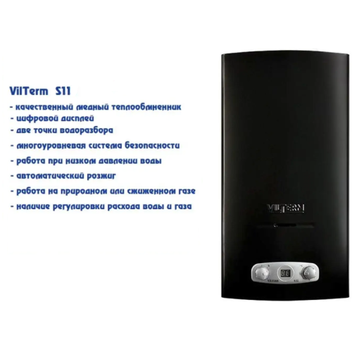 Газовый проточный водонагреватель VilTerm S11 ЧЕРНАЯ