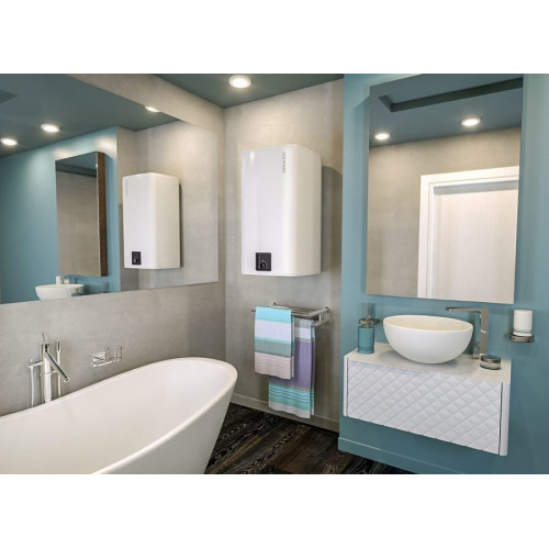 Компания Atlantic представляет модель поточно-накопительного водонагревателя Steatite Cube 150 S4CM, которая поможет обеспечить горячей водой большую семью. Прибор оборудован капиллярным термостатом, что обеспечивает невероятную точность регулировки температуры, кроме того, экономит эксплуатационные затраты электроэнергии. Для удобства предусмотрены режим быстрого нагрева воды, а также экономичный режим работы. Низкий уровень шума и стильный внешний вид позволят установить такое оборудование в ванной комнате или кухне, выполненной в любом интерьерном решении. Основные характеристики рассматриваемой модели водонагревателя: * Современный эргономичный дизайн. * Прочный стальной бак. * Пенополиуретановая изоляция бака. * Керамический нагревательный элемент, погруженный специальную эмалированную колбу. * Суперэмаль с цирконием. * Магниевый анод для антикоррозийной защиты. * Отсутствие возможности смешивания горячей и холодной воды в баке. * Капиллярный термостат. * Предохранительный клапан (клапан сброса избыточного давления воды). * Легкое и быстрое обслуживание: не нуждается в дренаже. * Автоматическое отключение при перегреве (или вручную). * Максимально низкий уровень звукового давления. * IP 24 - полное соответствие Европейским стандартам электрической безопасности. * Гарантия на электрическую часть 2 года; * Гарантия на бак 7 лет. Французская компания Atlantic выпустила линейку водонагревателей Stéatite Cube, которая разработана для обеспечения максимально комфортной эксплуатации пользователю. Главной особенностью семейства является применение новой запатентованной cтеатитовой технологии c керамическим нагревательным элементом, которая обеспечивает более качественный нагрев воды. Кроме того, использование такой технологии увеличивает срок службы прибора. Оригинальная, кубическая форма корпуса, которая отличается компактностью и привлекательным внешним видом.