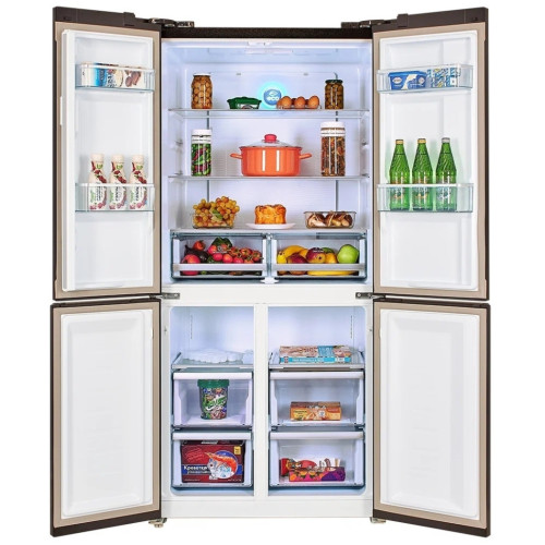Отдельностоящий многодверный холодильник HIBERG RFQ-490DX NFGR inverter обладает эффектным дизайном. Устройство привлекательно выглядит не только снаружи, но и внутри. Полки и ящики холодильника выполнены из высококачественных, долговечных материалов. В наличии светодиодная подсветка, сочетающая высокую яркость и низкое энергопотребление. Холодильник оснащен компрессором инверторного типа, отличающимся малым уровнем шума, увеличенным ресурсом и низким энергопотреблением. Диапазон температуры в морозильной камере – от -23 до -15 °C. Температурные границы, характеризующие холодильную камеру – 0 и 6 °C. Безопасности эксплуатации холодильника способна помочь функция блокировки от детей. Управление у модели сенсорное. Общий объем холодильника составляет 490 л. Модель подходит для «обслуживания» многочисленной семьи. При этом холодильник нельзя назвать громоздким: его ширина, глубина и высота равны 83.6, 63.6 и 183 см соответственно. Материал покрытия дверей – стекло.