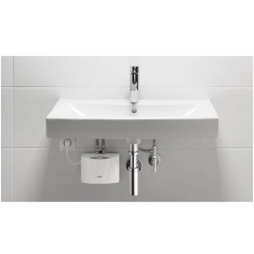 Clage MCX 7 проточный водонагреватель быстрого получения горячей воды, как в домашних условиях, так и в местах общественного посещения. Улучшение потока снижает расход воды. Полное электронное управление мощностью повышает эффективность нагрева и постоянство давления с температурой. Монтаж легкий и удобный благодаря тройнику и гибкой подводке для соединения с краном. Особенности MCX * Компактные размеры * Нагревательный элемент включается автоматически * Экономии воды * Экономия до 85% энергии * Спиральный нагревательный элемент * Удобная съемная крышка * Температура задается кнопками на приборе: ECO (35 °C), COMFORT (38 °C) или MAX (45 °С) * Электронное управление мощностью * Светодиодная индикация * Область применения: офисы, магазины, рестораны * В комплекте – тройник и гибкая подводка. Подключение 3/8″ * Класс защиты корпуса – IP 25 * Класс энергопотребления – A Серия MCX имеет своим местом расположения под раковиной рядом с раздачей горячей воды. Управление температурой происходит через электронную систему. Устройство снабжено защитой от попадания влаги. Устройство работает в условиях воды под давлением, поэтому имеет закрытое исполнение. Так же состояние режимов и температуры отображается при помощи индикации сверху на панели.