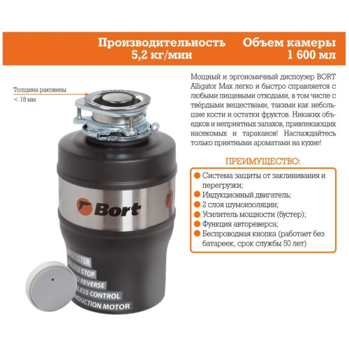 Измельчитель пищевых отходов Bort Alligator Max 93410778