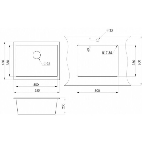 Преимущества кухонной мойки Granula 5551: * уникальный дизайн. * возможность установки под столешницу, вровень, сверху. Габариты изделия позволяют осуществить его установку в кухонный шкаф от 600 мм. Чаша мойки (380х500 мм) позволяет мыть в ней посуду практически любых размеров.