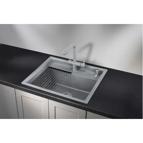 Кухонная мойка Granula KS-6003 Алюминиум. Инновационный кухонный комплекс серии Kitchen Space, даёт возможность изменять пространство с универсальным аксессуаром ролл-мат, в кухонной мойке серии Kitchen Space, благодаря специально спроектированному выступу в чаше, создавая дополнительное крыло внутри мойки. * Страна бренда Россия * Производитель: Granula * Другое название: Гранула * Высота мойки: 245 мм * Цвет: Алюминиум (серебристый) * Материал: кварц * Вес: 15.7 кг * Форма прямоугольные * Из искусственного камня * С одной чашей * Без крыла * Со сливом-переливом * С возможностью установки измельчителя отходов * С современным дизайном * Монтаж встраиваемая сверху