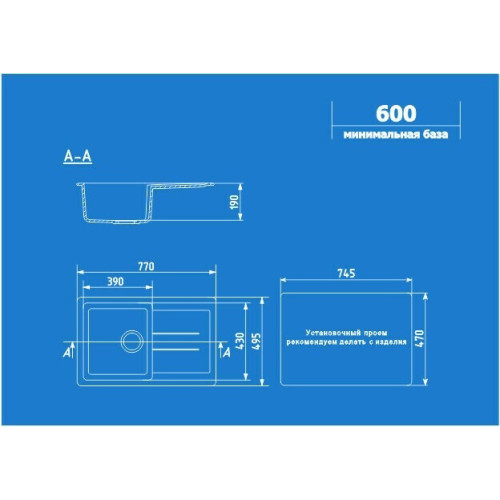 Кухонная мойка Ulgran U-507-308 черного цвета - красота и элегантность. Мойка устанавливается в заранее подготовленное место в столешнице. В комплекте сифон и фреза.