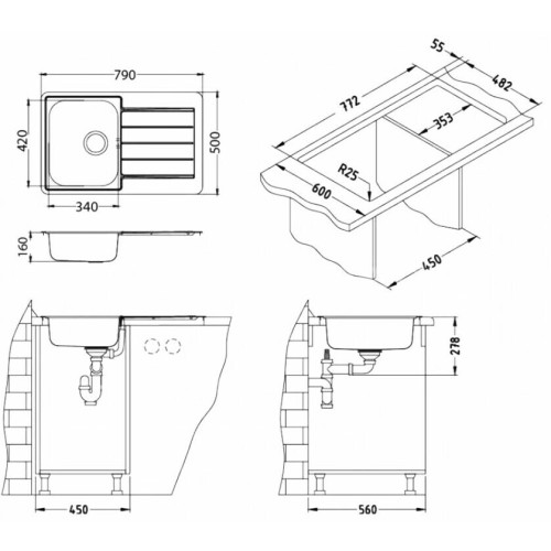 Словенское предприятие ALVEUS уже более 50 лет производит изделия из нержавеющей стали. Качество европейской нержавеющей стали позволяет гарантировать длительный срок эксплуатации при небольшой толщине стали. Поверхность мойки обработана по технологии NAT - способе, не предусматривающем дополнительной полировки и браширования. Изделие имеет цвет благородного металла с матовой, но в тоже время гладкой структурой. Самый простой в уходе вариант обработки поверхности, такую мойку проще всего почистить и заполировать. Отсутствие проделанных заранее отверстий в мойке делают ее более универсальной. Вы можете установить смеситель, дозатор, кран ля питьевой воды именно там, где Вам это удобно. Сделать отверстие в мойке можно с помощью обычного домашнего инструмента, и не требует профессиональных навыков. Дополнительные характеристики * Бренд: ALVEUS (Словения) * Производство: Словения * Материал: нержавеющая сталь * Толщина стали: 0.5 мм * Цвет: сталь, отделка
