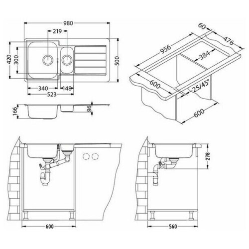 | Ширина мойки, см | 98 |