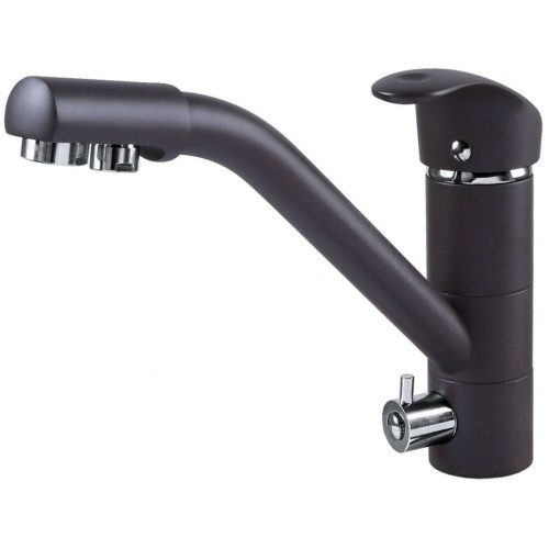 Тип смесителя однозахватный Назначение: для мойки Встраиваемый: нет Форма излива традиционная Наличие термостата :нет Запорный клапан керамический картридж Душ : нет Материал латунь Покрытие : напыление порошковой эмалью Переключатель на фильтр : есть