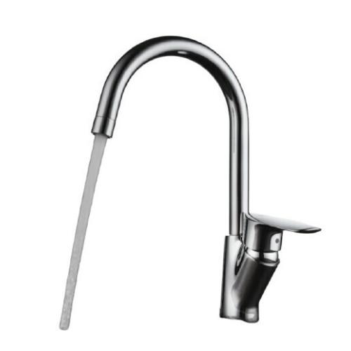 Смеситель для кухни D&K выполнен из латуни в цвете хром. Излив смесителя поворотный. Монтаж производится на поверхность с одним отверстием. Управление смесителем рычажное.