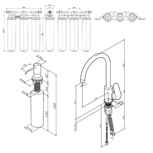 Кухонный смеситель АМ.РМ со встроенным каналом для питьевой воды успешно совмещает в себе два в одном. Благодаря прогрессивной технологии Fresh Boost при вращении ручки на 90 градусов вы можете наслаждаться чистой водой из фильтра. Если же Вам нужна обычная вода, смеситель управляется привычным способом. В набор 3 в1 также входит универсальный встраиваемый дозатор для моющего средства. Это незаменимый аксессуар, который выполняет несколько функций. Во-первых, экономия расхода моющего средства или жидкого мыла. Во-вторых, избавляет от визуального шума. Диспенсеры произведены из нержавеющей стали, устойчивой к коррозии. Плавный ход механизма помпы гарантирует приятное взаимодействие с продуктом. Длина носика составляет 75 мм, поэтому будет удобна для использования на любом типе и размере раковины. Набор 3 в1 поможет поддерживать красивый и эстетичный внешний вид кухни.
