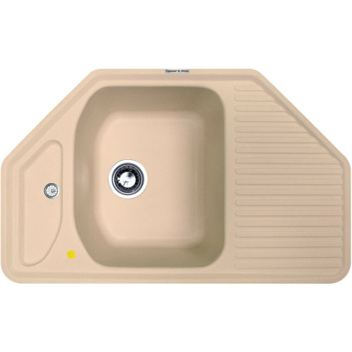 Первое, что бросается в глаза – это нестандартная, современная эргономичная форма. Модель ECKIG 800 представляет собой изумительную альтернативу прямолинейной двухсекционной мойке. Выполненная из натурального гранитного камня, эта симметричная угловая мойка, имеет отличные показатели качества и высокой функциональности. Такое устройство предназначено для встраивания в угловую секцию столешницы, что позволяет использовать пространство с максимальной рациональностью. Конструкция имеет две чаши разных размеров: основная, прямоугольной формы, с закругленными углами, расположена посередине, а вторая маленькая неправильной формы находится сбоку от нее. На противоположной стороне размещено удобное треугольное крыло, на котором можно сушить вымытую посуду. Что примечательно, углублённое закругление слева в основной рабочей полости, позволяет разместить в чаше посуду даже с длинными ручками, не наклоняя ее и не уменьшая полезный объём мойки. Технические характеристики * Бренд: Zigmund Shtain * Страна: Турция * Материал: искусственный гранит * Цвет: бежевый (топлёное молоко) * Отверстие для перелива: нет, только на полочке * Комплект поставки: мойка, сливная арматура, крепеж * Срок эксплуатации: 10 лет * Вес: 13,7 * Гарантия: 3 года