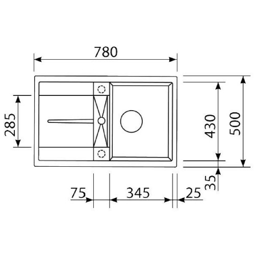 Ширина мойки, см 78