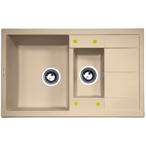 Мойки из искусственного гранита Zigmund Shtain ничем не уступают по своим характеристикам аналогичным мойкам из Италии и Германии. Благодаря качественному сырью и современным технологиям, мойки Zigmund Shtain устойчивы к воздействию пищевых кислот и красителей, не подвержены влиянию ультрафиолета и коррозии, а так же легко сохраняют свою структуру и цвет при перепадах температур. Благодаря своим антибактериальным свойствам мойки Zigmund Shtain активно препятствуют развитию грибков и бактерий на поверхности. Мойки безопасны в использовании, так как не содержат вредных примесей и безопасны при монтаже. Уход за этими мойками чрезвычайно прост: после использования легко моются обычным мыльным раствором. Технические характеристики * Бренд: Zigmund Shtain (Турция) * Страна производства: Россия * Материал: искусственный гранит * Цвет: бежевый (топлёное молоко) * Отверстие под перелив: есть в малой чаше * Отверстие под смеситель: нет, намечено 4 * Срок эксплуатации: 5 лет * Вес: 9,3 кг * Гарантия: 1 год
