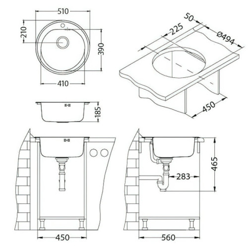 Глубина мойки, см 51