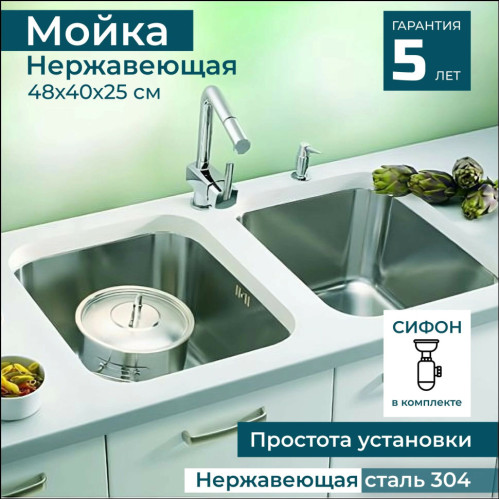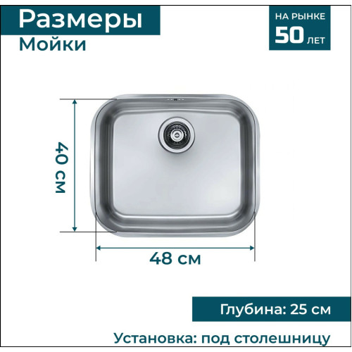 Словенское предприятие ALVEUS уже более 50 лет производит изделия из нержавеющей стали. Качество европейской нержавеющей стали позволяет гарантировать длительный срок эксплуатации при небольшой толщине стали. Поверхность мойки обработана по технологии NAT - способе, не предусматривающем дополнительной полировки и браширования. Изделие имеет цвет благородного металла с матовой, но в тоже время гладкой структурой. Самый простой в уходе вариант обработки поверхности, такую мойку проще всего почистить  и заполировать. Отсутствие проделанных заранее отверстий в мойке делают ее более универсальной. Вы можете установить смеситель, дозатор, кран ля питьевой воды именно там, где Вам это удобно. Сделать отверстие в мойке можно с помощью обычного домашнего инструмента, и не требует профессиональных навыков. Дополнительные характеристики * Бренд: ALVEUS (Словения) * Производство: Словения * Материал: нержавеющая сталь * Толщина стали: 0.8 мм * Цвет: сталь, отделка