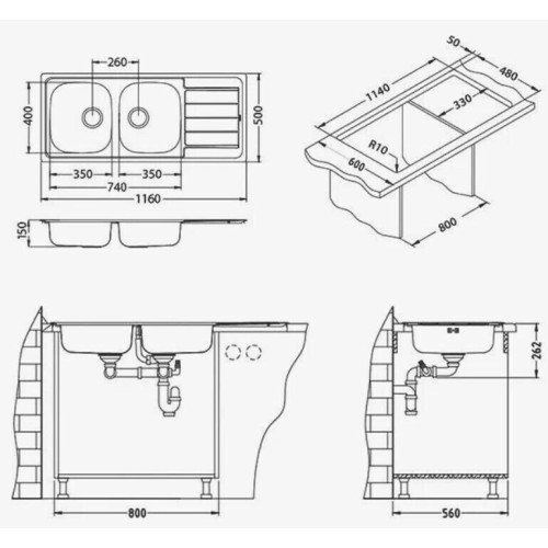 | Ширина мойки, см | 116 |