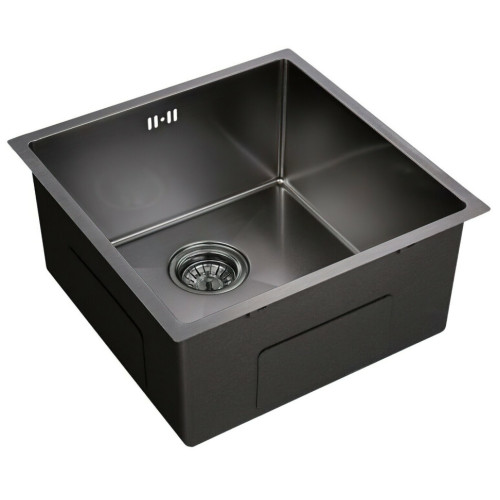 Кухонная мойка Emar EMB-113 Nano Dark. Одночашевая мойка. Мойка имеет размеры 450 x 450 мм и R10 радиус закругления. Внутренние стороны также, с R10 радиусом закругления. Мойка из нержавеющей стали с различной поверхностью PVD покрытия. Вес мойки в коробке с комплектующими: 6.7 кг, вес нетто: 5.7 кг. Размер слива 114 мм. Мойка сварная, универсального монтажа. Толщина стали: 1.2 мм. Сталь мойки: 304 марки. В коробке 1 штука. С нижней стороны и по бокам есть шумопоглощающие накладки. * Материал нержавеющая сталь * Форма мойки квадратная * Форма чаши квадратная * Количество основных чаш 1 * Установка врезная, интегрированная, универсальная * Количество дополнительных чаш нет * Особенности PVD покрытие, сливная арматура * Толщина металла 1.2 мм * Тип мойка * Срок службы 15 лет