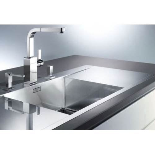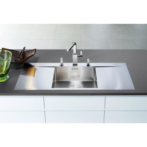Blanco FLOW 45 S-IF - кухонная мойка с плавным переходом между чашей и крылом. Модель отливается элегантным внешним видом и широким функционалом. Устанавливается в один уровень со столешницей благодаря плоскому канту IF. Раковина занимает центральное положение, что обеспечивает удобный доступ к рабочему месту. Оснащена отводной арматурой InFino ® с плоской интуитивной системой управления PushControl™. Слив воды производится автоматически, при нажатии на специальную кнопку. Высокие стенки раковины сокращают количество брызг.