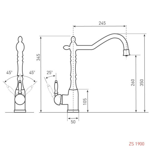 Смеситель для кухни Zigmund & Shtain ZS 1900 нержавейка полированная