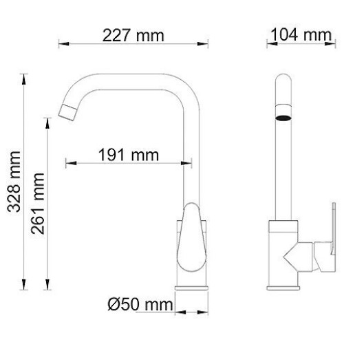Ширина: 104 мм Высота: 328 мм Длина: 227 мм Высота излива: 261 мм Длина излива: 191 мм Цвет: Хром Материал: Латунь Вес: 1,33 кг