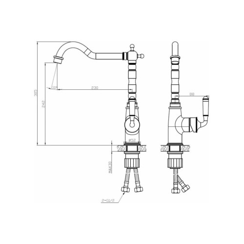 | Подводка воды | 1/2' |