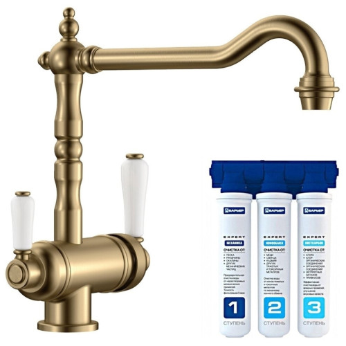 Смеситель для кухни Blanco Sora полир./латунь + фильтр для воды BWT-Барьер