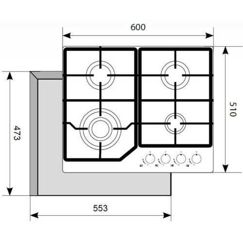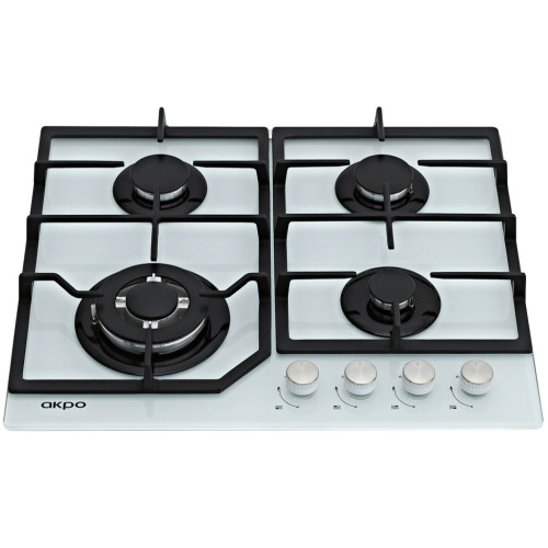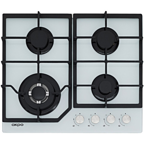 Газовая варочная поверхность Akpo выполнена в привычном белом цвете из высококачественного закаленного стекла, которое обеспечивает максимальную безопасность при работе с устройством, его практически невозможно разбить. Данная модель является встраиваемой (ширина встраивания 55.3 см), поэтому прекрасно впишется даже на кухнях малой площади. Установленные на поверхности решетки выполнены из прочного чугуна и достаточно легко очищаются. Варочная поверхность Akpo имеет четыре газовые конфорки: три обычных и одну конфорку типа