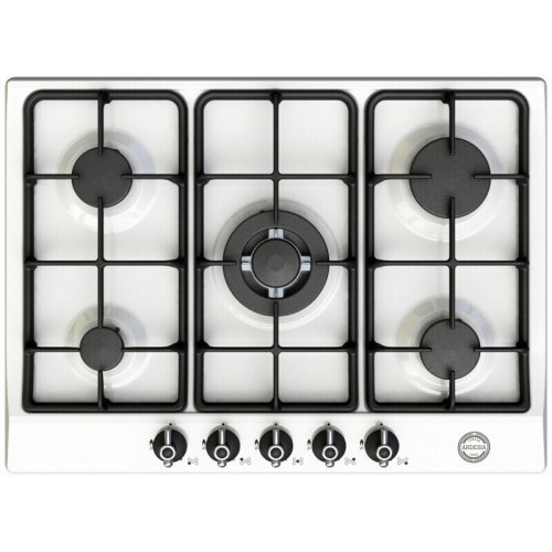 Газовая варочная поверхность Ardesia HBF 70V5 GTW обладает 5 конфорками при ширине всего 70 см. Среди конфорок имеется конфорка для вока с тройным пламенем и повышенной мощностью, идеально подходящая для приготовления вкусных и полезных азиатских блюд. Она расположена диагонально относительно других конфорок, что позволяет с удобством разместить на ней посуду большого диаметра, не задевая при этом другие зоны приготовления. В комплекте имеется кольцо для вока, с помощью которого Вы сможете зафиксировать на поверхности посуду с выпуклым дном. Все конфорки поджигаются автоматически, при повороте переключателей, а также оснащены функцией газ-контроля. Эта модель в классическом белом исполнении имеет элементы управления в ретро-стиле, что позволяет ей сочетаться как с другой техникой Ardesia из коллекции