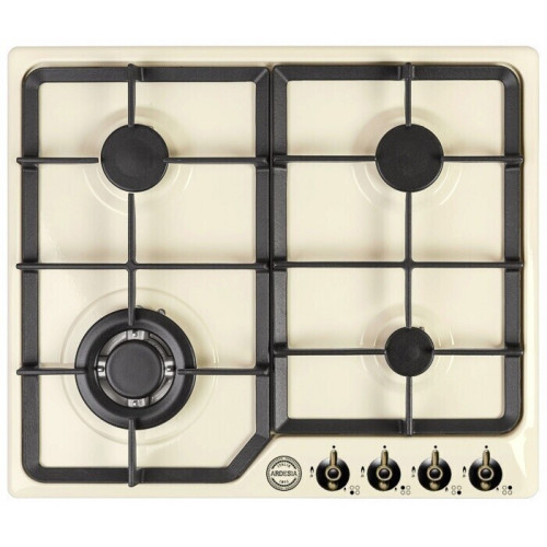 Газовая варочная поверхность Ardesia F 6V4 GTRI выполнена в кремовом цвете и имеет латунные переключатели в стиле ретро, что позволяет ей грамотно сочетаться с созвучным кухонным гарнитуром в стиле ретро, классика или кантри. Панель обладает 4 конфорками с автоматическим поджигом, среди которых одна - особо мощная