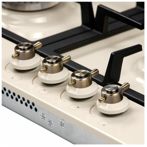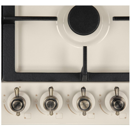 Общие данные: Габариты: 10х58х50 см Габариты ниши для встраивания: -x56x48 см Тип поверхности: эмаль Количество конфорок: 4 Мощность конфорок: 2,4; 1,8; 1,8; 1 кВт Автоматический электроподжиг Управление и функции: Управление: фронтальное Регуляторы газа поворотные Дополнительная информация: Напряжение / сила тока: 220-240 В / 50-60 Гц Потребление электроэнергии: 0,6 кВт Работа на газе: природный / баллонный опционально Рабочая поверхность: металл с покрытием бежевой эмалью (устойчивое к нагреву эмалированное покрытие, которое не меняет цвет во время эксплуатации) Регуляторы горения газа: поворотные Рустик ретро Решетки: чугунные (2 шт.) Вес нетто / брутто: 8,5 кг / 10,6 кг