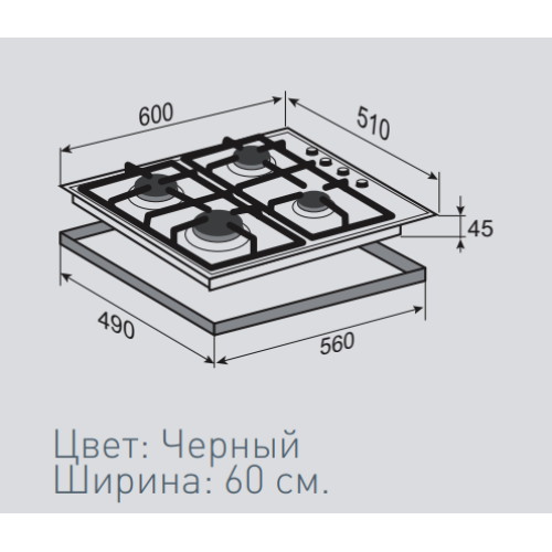 | Общее количество конфорок | 4 |
