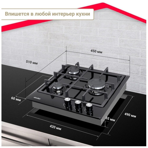 Характеристики Бренд Simfer Ширина, см 45 Глубина, см 52 Высота, см 5.5 Материал поверхности Эмалированная сталь Материал решетки чугунные Всего конфорок 3 Расположение панели управления фронтальная Комплектация провод для электроподжига, набор креплений, жиклеры для баллонного газа, решетки чугунные, инструкция по эксплуатации, гарантийный талон Цвет Черный Вес, кг 6.7 Переключатели поворотные Страна производства Турция Автоматический розжиг Да Размер упаковки (ВхШхГ), см 14/48/56 Гарантия производителя, лет 5 Тип газа магистральный/балонный