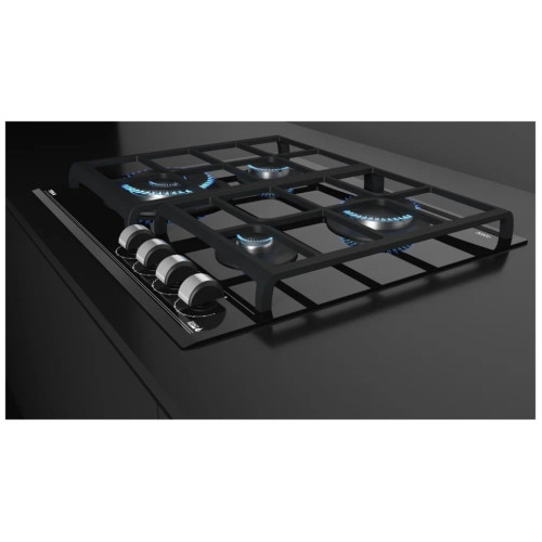 Чёрная стеклокерамика Schott Ceran 4 мм с фацетом по переднему краю. Эргономичные регуляторы с 9-тью уровнями мощности. Высокоточная регулировка пламени. Съёмные горелки чёрного цвета Sabaf HE. Съёмная чугунная решетка. Клипсы для простого монтажа в столешницу без винтов. Автоподжиг на каждой горелке. Газ-контроль на каждой горелке. 4 зоны приготовления, включая зону с двойным кольцом.