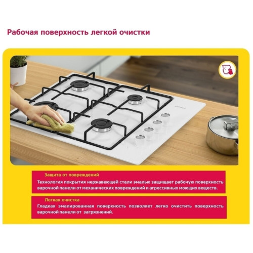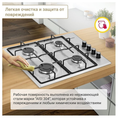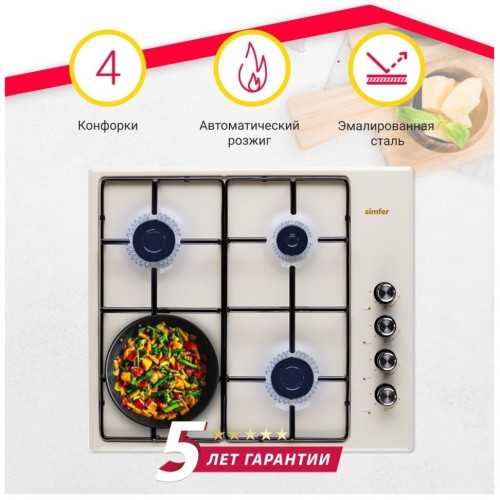 Газовая варочная панель Simfer H60Q40R400 - модель, которая благодаря своим компактным размерам органично впишется в интерьер вашей кухни и сделает ежедневный процесс приготовления еды комфортным. Рабочая поверхность выполнена из нержавеющей стали – прочного и долговечного материала. На ней располагаются четыре конфорки - разные по диаметру и мощности пламени в них. А значит вы сможете выбрать оптимальную конфорку для приготовления разнообразных блюд. Для удобного пользования в поворотные переключатели встроен электроподжиг, который значительно упрощает работу с панелью. Начните готовить изысканные блюда вместе с варочной панелью Simfer!