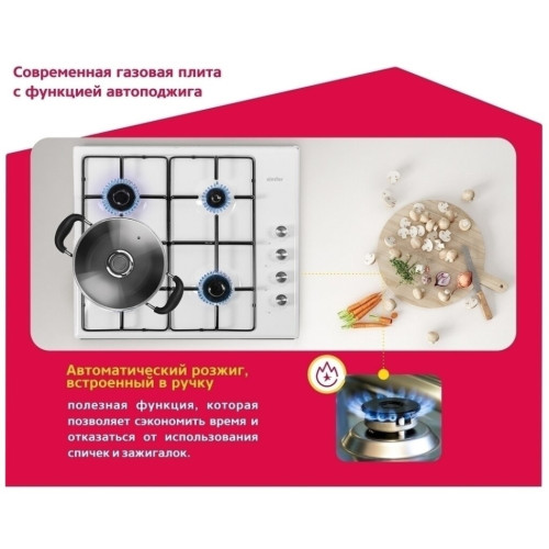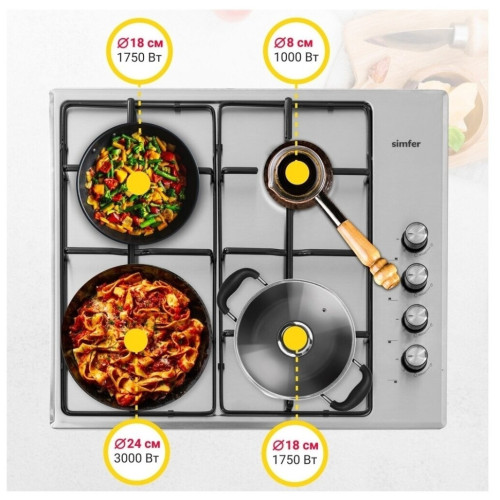 Газовая варочная панель Simfer H60Q40R400 - модель, которая благодаря своим компактным размерам органично впишется в интерьер вашей кухни и сделает ежедневный процесс приготовления еды комфортным. Рабочая поверхность выполнена из нержавеющей стали – прочного и долговечного материала. На ней располагаются четыре конфорки - разные по диаметру и мощности пламени в них. А значит вы сможете выбрать оптимальную конфорку для приготовления разнообразных блюд. Для удобного пользования в поворотные переключатели встроен электроподжиг, который значительно упрощает работу с панелью. Начните готовить изысканные блюда вместе с варочной панелью Simfer!